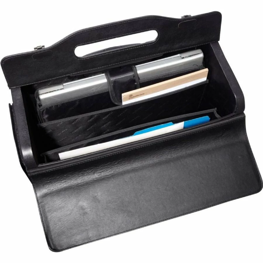 It’s all Business with our high-capacity wheeled laptop catalog case in black featuring a removable padded laptop sleeve to ensure that your laptop is safe and secure. This versatile genuine leather case is equipped with a zippered front organizer and separate compartments designed for transporting documents, folders, product samples, and lots more!