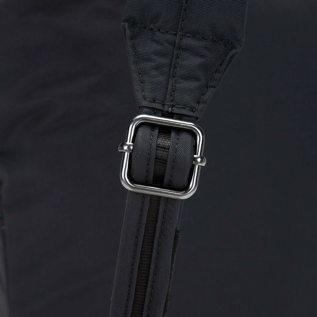 - Cut-resistant anchor strap secures around a fixed object to protect your bag