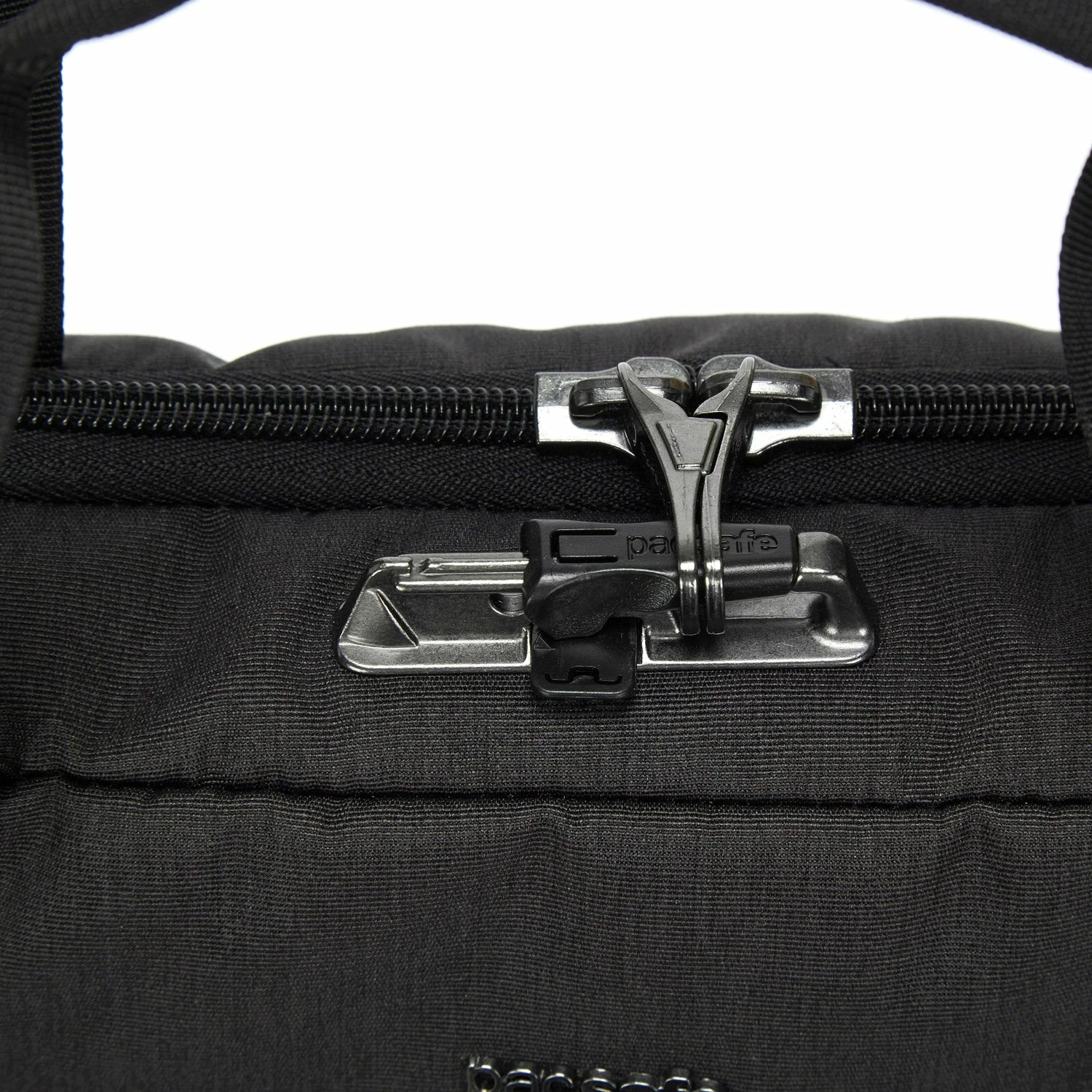 - Cut-resistant anchor strap secures around a fixed object to protect your bag