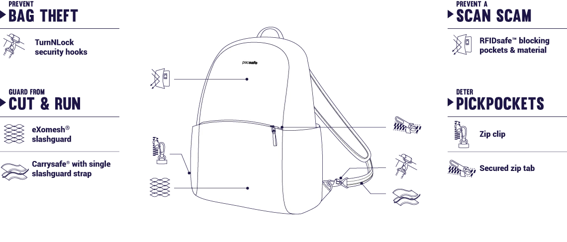 The Pacsafe Stylesafe Anti Theft Backpack is minimalist cool, while packing in handy organization like a 11inch laptop sleeve and multiple pockets. Includes our proven anti-theft technology to help you breeze between meeting after work catch ups.