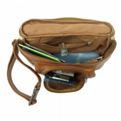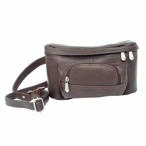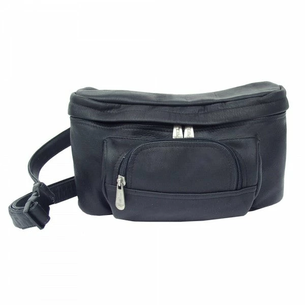 Spacious main compartment zips open to reveal an interior zip-pocket. Front U-shaped zip-pocket, rear zip-pocket, and adjustable waist strap.