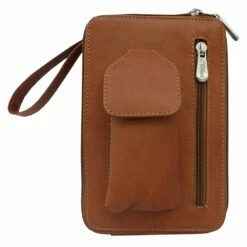 Pocket book bag with zip-pocket and cell phone pocket in front, lap pocket on the back for a wallet or passport, 3-way zip opening compartment for credit cards, pens, and CD’s. One main compartment for a camera and more