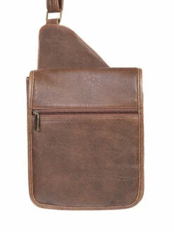 The Scully Aerosquadron Collection Leather Travel Bag in Walnut is a messenger style shoulder bag with a full flap closure and magnetic snap. It features and exterior front zip pocket, two rear open pockets, an inside organizer for credit cards and pens, and a roomy main compartment with zip pocket. Carry all your travel essentials in this stylish leather bag.