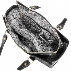 - Messenger style shoulder bag with a full flap closure and magnetic snap